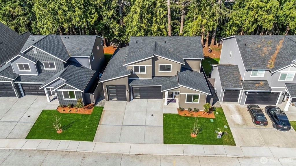 Mountain Glen, a Fabulous New Home Community in Puyallup. Final opportunity in this sought-after cul-de-sac community, ideally located near schools, shopping, dining & everyday conveniences. Move in just in time for summer and enjoy the perfect blend of comfort, style, and functionality. Designed with today's lifestyle in mind, the open-concept main floor offers seamless indoor-outdoor living. The spacious great room w/ cozy gas FP flows effortlessly into the dining area and beautifully appointed kitchen-complete w/ quartz countertops, center island, tile backsplash, stainless steel appliances incl gas range, soft-close cabinetry, and a generous walk-in pantry. Step outside to your covered patio overlooking a fully fenced and professionally landscaped backyard-perfect for entertaining or relaxing all season long. Upstairs, retreat to the private primary suite featuring a walk-in closet, and convenient direct access to the laundry room. The spa-inspired 5-piece ensuite includes a glass and tile shower, soaking tub, and dual vanities. Additional highlights include designer-selected finishes, white millwork, wrought-iron railing, 8' interior doors on the main level and heatpump with A/C for year-round comfort. Rare 3-car garage includes a 10' high third bay door-ideal for larger vehicles, recreational gear, or extra storage. Builder included upgrades: mandoor in garage, upper/lower cabinets in laundry, coffered ceiling in primary & direct access to laundry room from Primary.